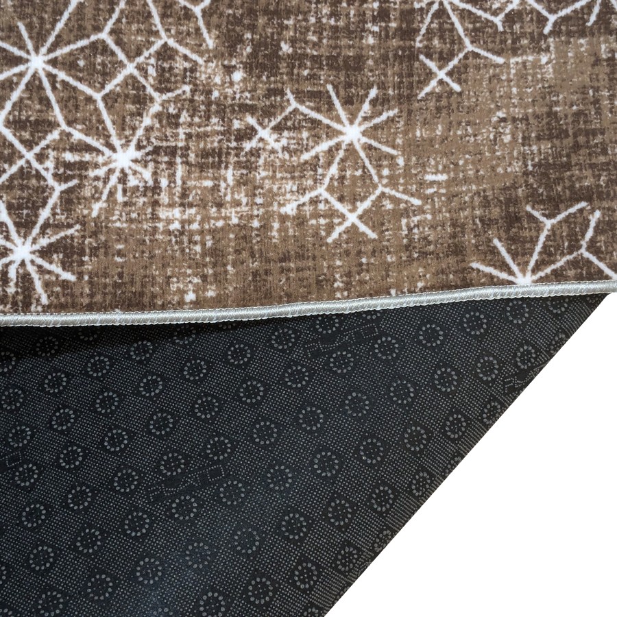 Covor subțire, cu grosimea de aproximativ 8 mm. Pe verso suportul acestuia este prevazut cu cauciuc, sub formă de granule, acestea oferind o mai buna aderență pe suprafețe gen: parchet laminat, gresie, mozaic, etc. Este ușor de întreținut: măturat, aspirat sau spălat, cu textura fină, moale și plăcut la atingere. Se adaptează pentru orice tip de încăpere: camere de zi, dormitoare, bucătarii, holuri, balcoane închise, etc. Nuanțe de maro.
