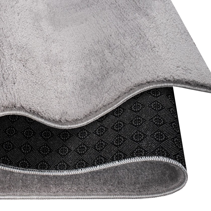 Covor pufos, cu grosimea de aproximativ 2 cm . Pe verso suportul acestuia este prevăzut cu cauciuc, sub formă de granule, acestea oferind o mai bună aderență pe suprafețe gen: parchet laminat, gresie, mozaic, etc. Este ușor de întreținut: măturat, aspirat sau spălat, cu textura fină, moale și plăcut la atingere ( atingere fina ) . Se adaptează pentru orice tip de încăpere: camere de zi, dormitoare, bucătarii, holuri, balcoane închise, etc. In functie de lumiozitate si de unghiul din care este privit, nuanța este ușor diferita.